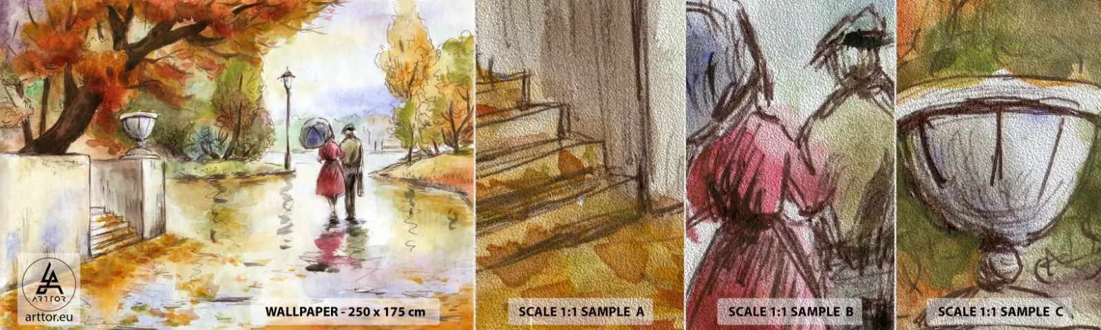 Mostră tapet Premium Sand - Toamnă romantică în parc - Oraș, oameni, Cuplu îndrăgostit - 100x30 cm
