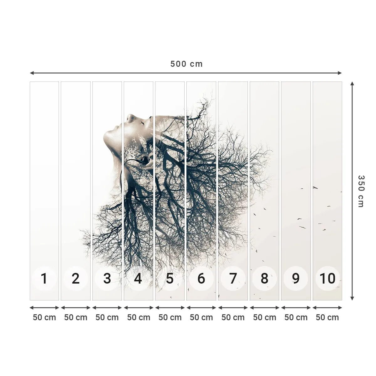 Tapet Premium Canvas - Ascultând șoapta copacului - Abstracția, Chipul de femeie, Copac - 500x350 cm