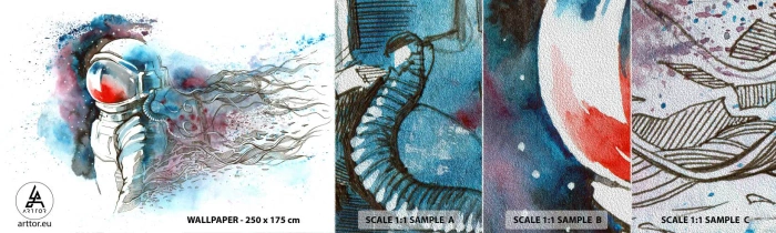 Mostră tapet Premium Sand - Singur cu cosmosul - Astronaut, Cosmonaut, Abstracția - 100x30 cm