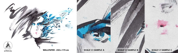 Mostră tapet Premium Sand - Portret senzual în gri și albastru - Femeie, Chipul de femeie, Abstracția - 100x30 cm
