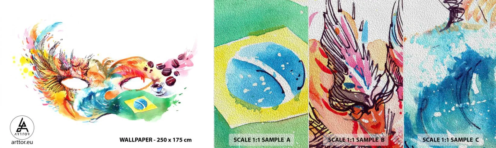 Mostră tapet Premium Sand - Brazilia salută cu samba - Capota, Carnaval, Abstracția - 100x30 cm