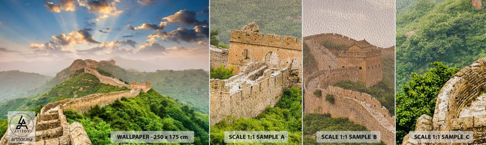 Mostră tapet Premium Sand - Măreția netrecătoare - Peisaj, Marele Zid Chinezesc, Asia - 100x30 cm