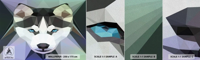Mostră tapet Premium Sand - O amintire a zăpezilor din nord - Abstracția, Animale, Lup - 100x30 cm