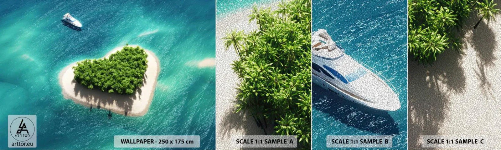 Mostră tapet Premium Sand - Iubesc vara - Peisaj, Insula În Ocean, Iaht - 100x30 cm