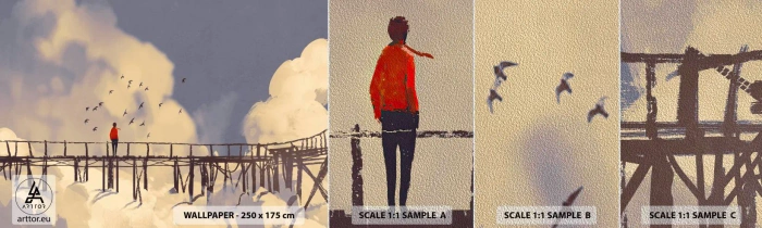 Mostră tapet Premium Sand - Dorință albastră - Abstracția, Pod, nori - 100x30 cm