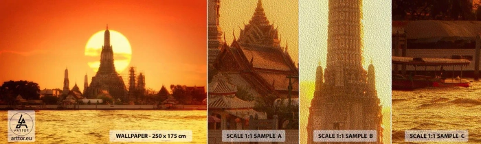 Mostră tapet Premium Sand - Spre soare, mereu spre soare - Bangkok, Templul zorilor, Tailanda - 100x30 cm