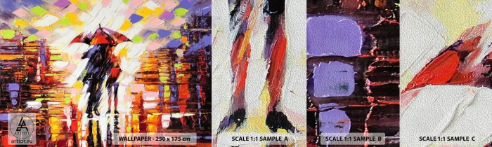Mostră tapet Premium Sand - Împreună prin noapte și ploaie - Abstracția, Cuplu îndrăgostit, Plimbare in ploaie - 100x30 cm