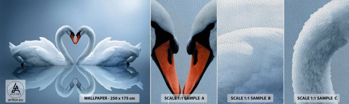 Mostră tapet Premium Sand - Timp pentru dragoste - Lebedele, Dragoste, inima - 100x30 cm