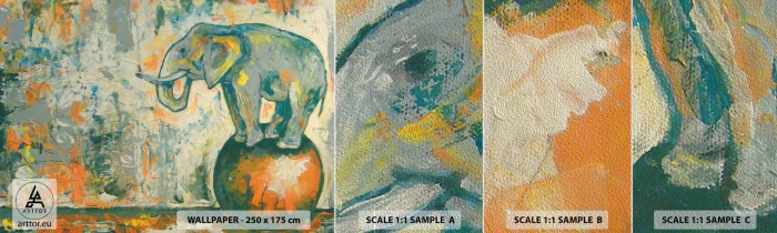 Mostră tapet Premium Sand - Trăiască circul! - Abstracția, Elefant, Circ - 100x30 cm