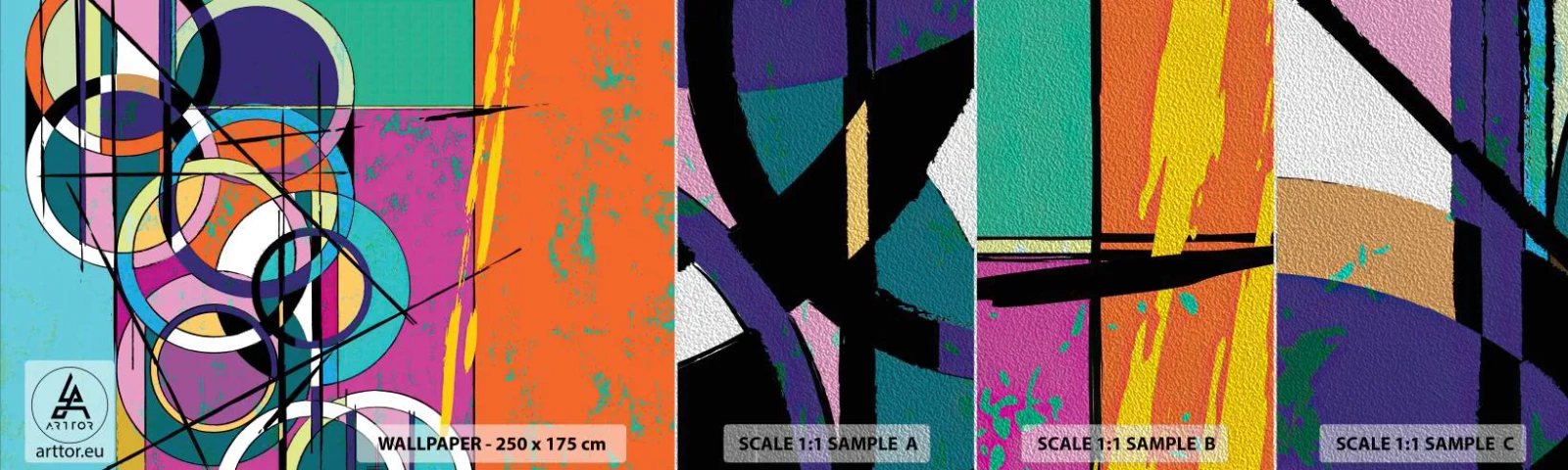 Mostră tapet Premium Sand - Roată cu roată - Abstracția, Bucată, Grafică - 100x30 cm