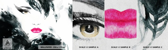 Mostră tapet Premium Sand - Atenție! Femme fatale - Abstracția, Chipul de femeie, Portretul unei femei - 100x30 cm