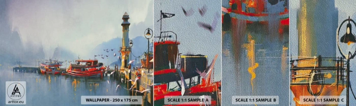 Mostră tapet Premium Sand - La capătul lumii - Peisaj, Port, Far - 100x30 cm