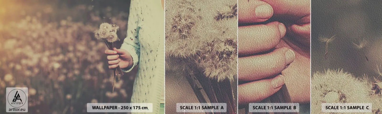 Mostră tapet Premium Sand - Păstrați-le, vă rog - Păpădie, luncă, Natură - 100x30 cm