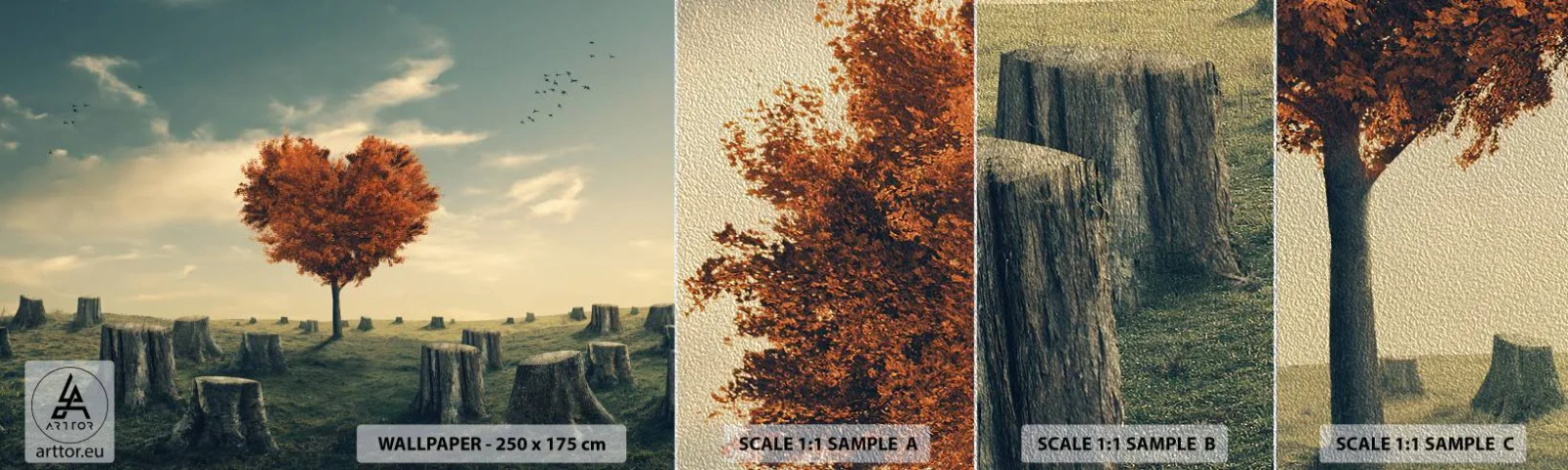 Mostră tapet Premium Sand - Încă mai există speranță - Abstracția, Peisaj, Copac - 100x30 cm