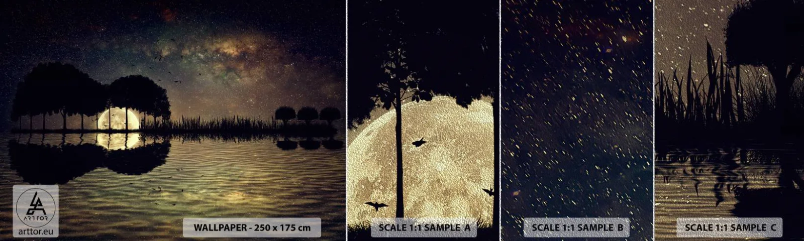 Mostră tapet Premium Sand - O noapte la capătul lumii - Peisaj, Lac, Luna - 100x30 cm