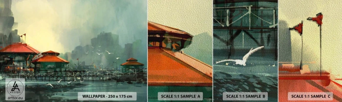 Mostră tapet Premium Sand - O zi ploioasă în port - Oras port, Arhitectură, Mare - 100x30 cm