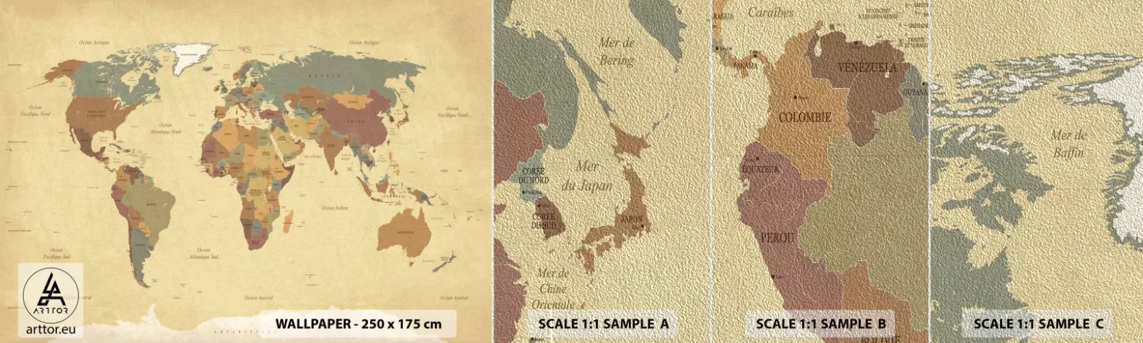 Mostră tapet Premium Sand - Pentru tine - întreaga lume - Harta lumii, Continente, Călătorii - 100x30 cm