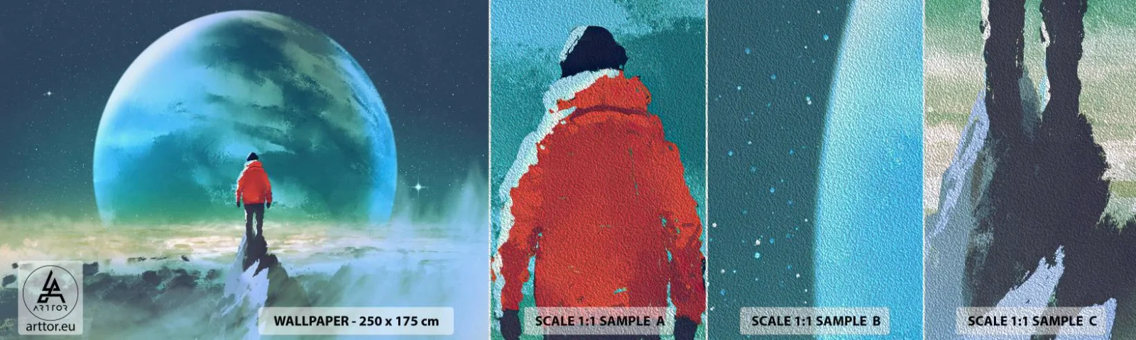 Mostră tapet Premium Sand - Descoperitorul unui nou ținut - Abstracția, Fantezie, Planeta Pământ - 100x30 cm