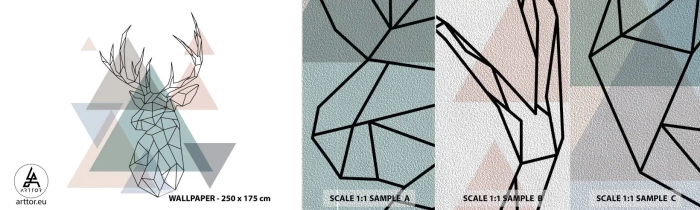 Mostră tapet Premium Sand - Într-o pădure geometrică - Abstracția, Cerb, Grafică - 100x30 cm