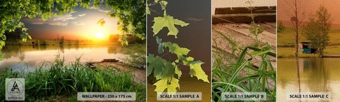 Mostră tapet Premium Sand - Peisaj într-un cadru verde - Peisaj, Lac, Pod de lemn - 100x30 cm