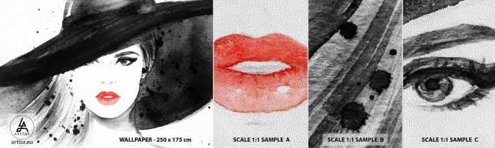 Mostră tapet Premium Sand - Doamna în negru - Femeie, Chipul de femeie, Portretul unei femei - 100x30 cm