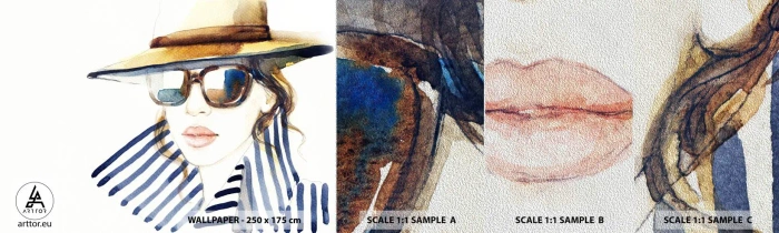 Mostră tapet Premium Sand - Bun venit la Florida! - Chipul de femeie, Portretul unei femei, Modă - 100x30 cm