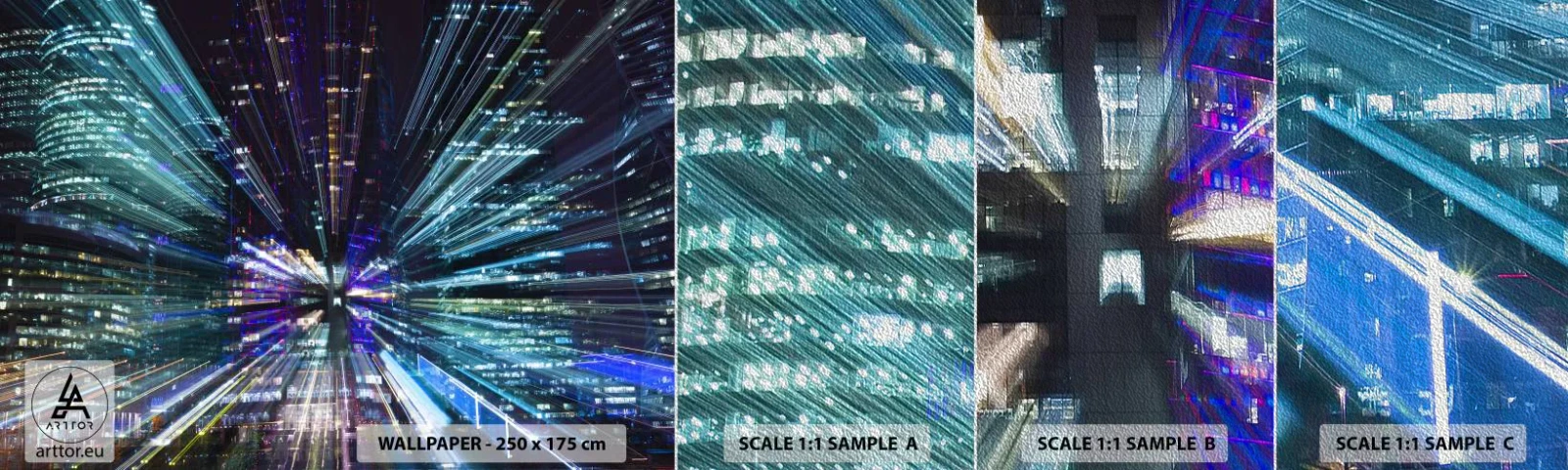 Mostră tapet Premium Sand - Trecere către hiperspațiu - Abstracția, Oraș, Grafică - 100x30 cm