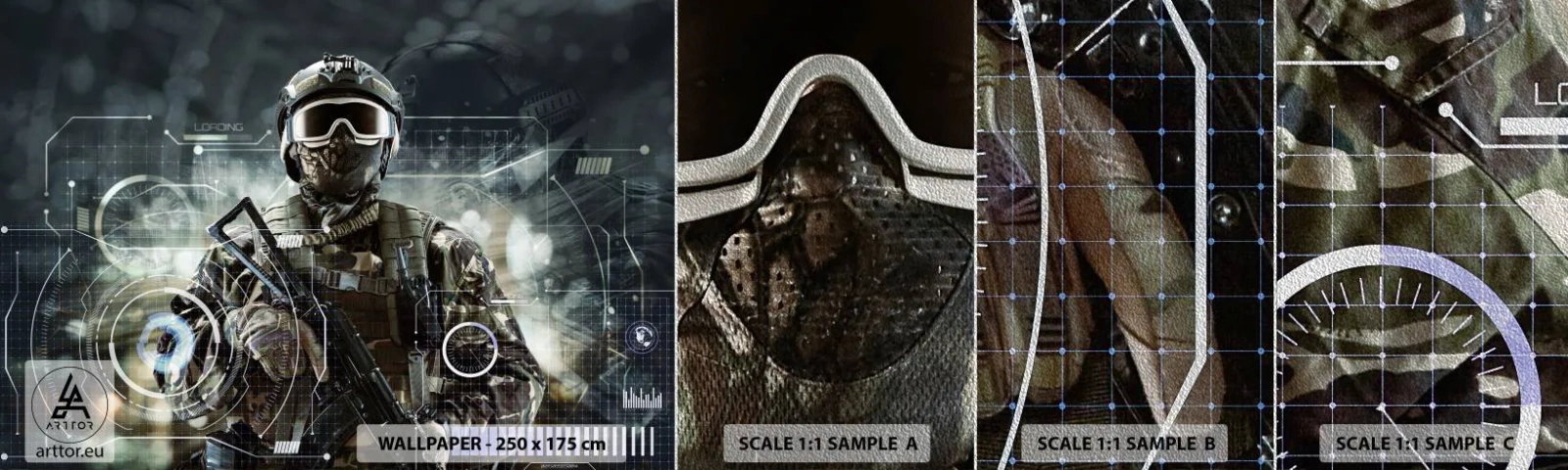 Mostră tapet Premium Sand - Putere la putere - Abstracția, Soldat, Comando - 100x30 cm
