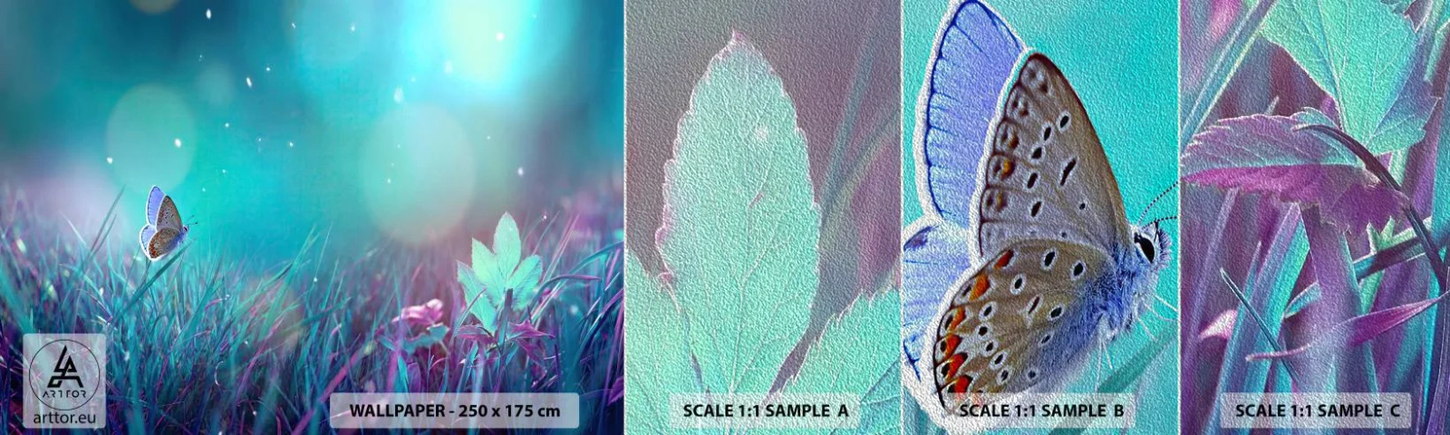 Mostră tapet Premium Sand - Viața secretă a luncii - Fluture, luncă, Bucată - 100x30 cm