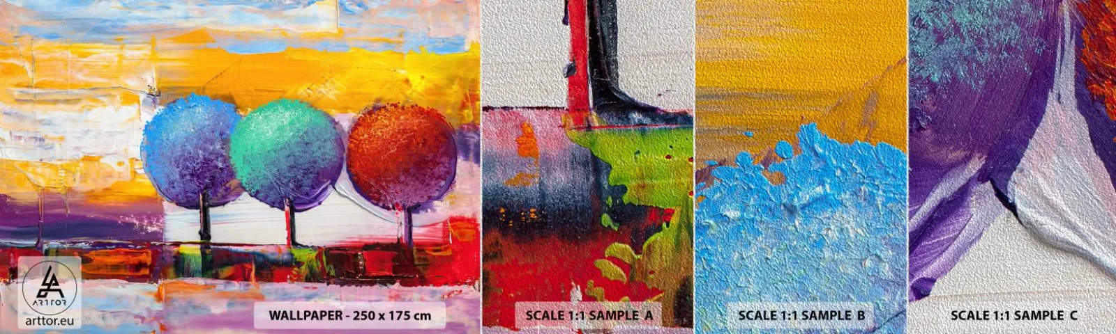 Mostră tapet Premium Sand - Trei copaci - Peisaj, Copaci, Bucată - 100x30 cm