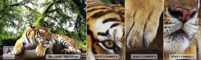 Mostră tapet Premium Sand - Cu respect - Tigru, Animale, Prădător - 100x30 cm