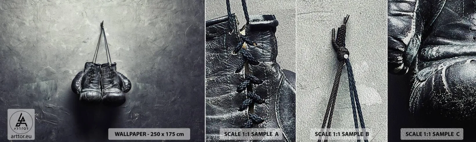 Mostră tapet Premium Sand - Timp de luptă și timp de pace - Cutie, Manusi de box, Epocă - 100x30 cm