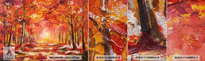 Mostră tapet Premium Sand - Pădurea de cupru - Toamnă, Parc, Peisaj - 100x30 cm