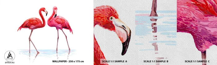 Mostră tapet Premium Sand - Pink randez-vous - Flamingos, Păsări, Bucată - 100x30 cm