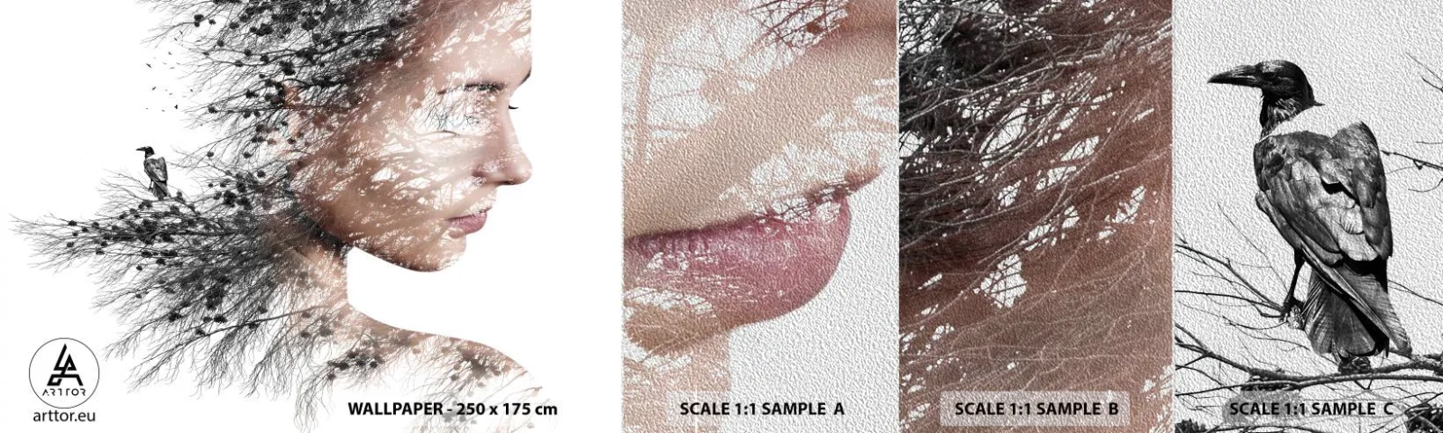 Mostră tapet Premium Sand - Spiritul pădurii - Abstracția, Chipul de femeie, Copac - 100x30 cm