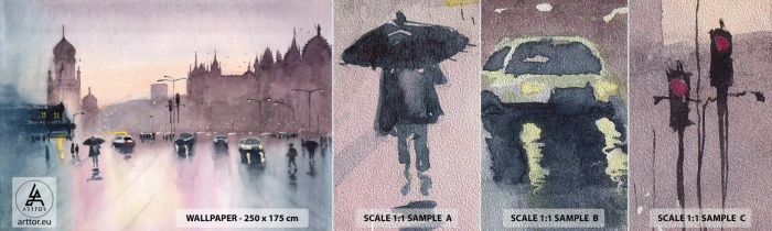 Mostră tapet Premium Sand - Într-o ceață ploioasă - Oraș, Arhitectură, Monumente - 100x30 cm