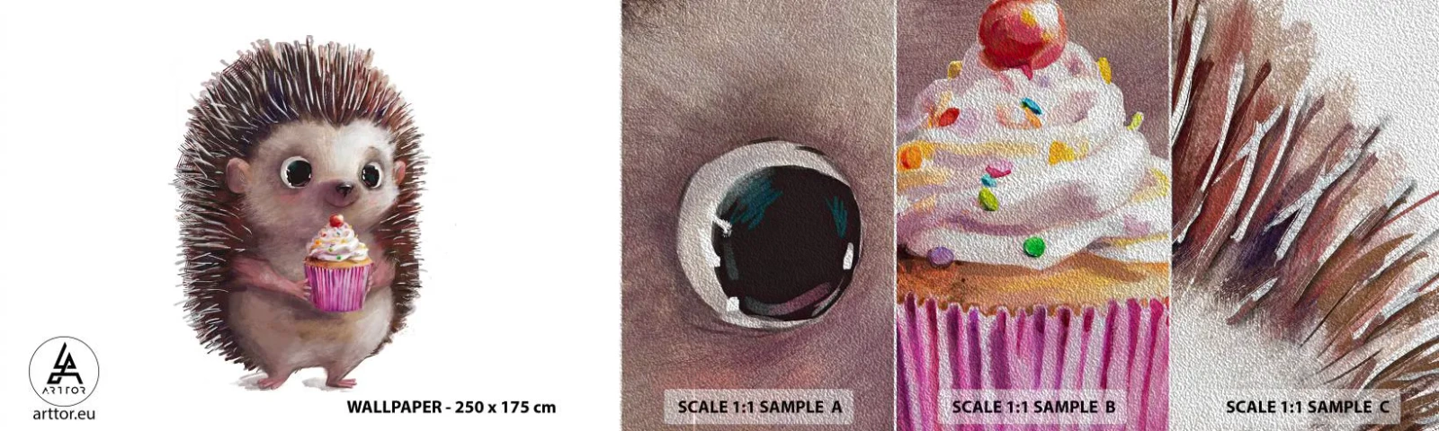 Mostră tapet Premium Sand - Fiecare zi este o sărbătoare - Pentru copii, Arici, Basm - 100x30 cm