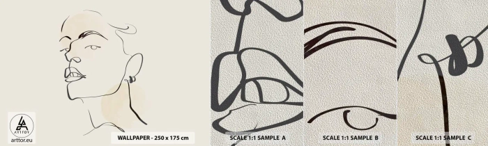 Mostră tapet Premium Sand - O privire mândră - Chipul de femeie, Portretul unei femei, Grafică - 100x30 cm