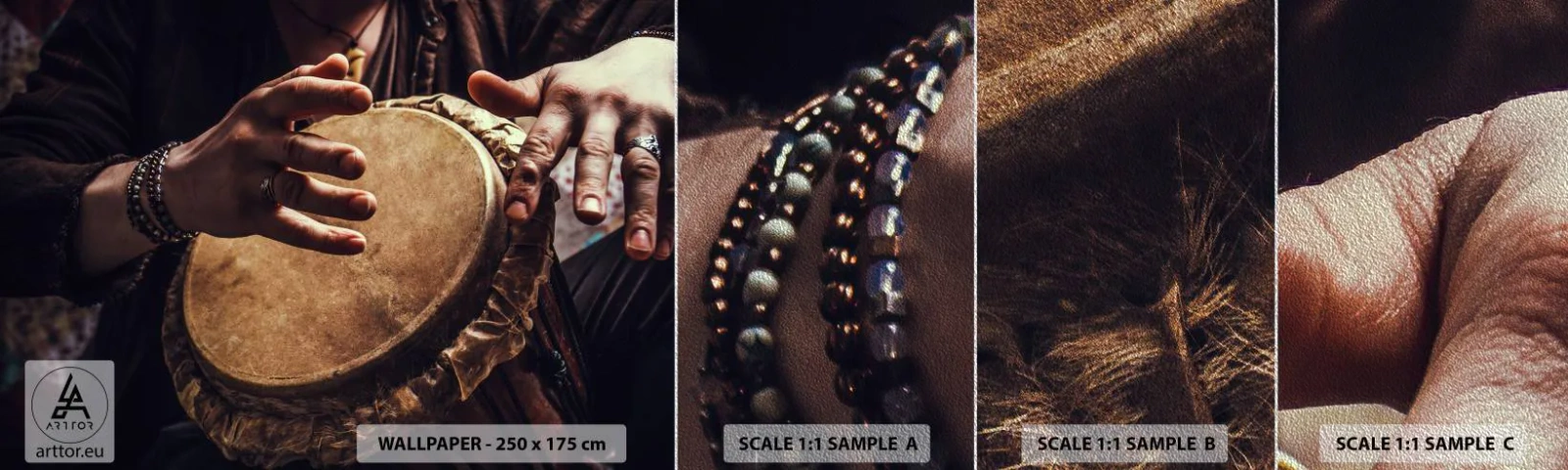 Mostră tapet Premium Sand - În ritmul inimii - Joc de tobe, Africa, Muzică - 100x30 cm