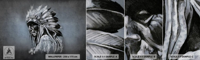 Mostră tapet Premium Sand - Înapoi la rădăcini - indian, Plume, Om - 100x30 cm