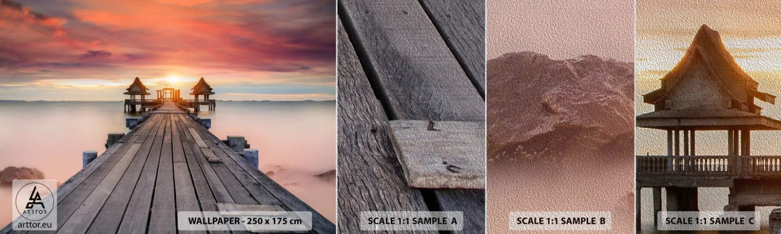 Mostră tapet Premium Sand - Vestul la est - Peisaj, Pier din lemn, Mare - 100x30 cm