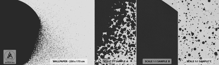 Mostră tapet Premium Sand - Mișcarea particulelor - Abstracția, alb-negru, Grafică - 100x30 cm