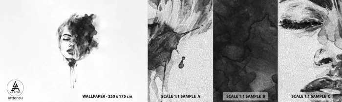 Mostră tapet Premium Sand - La ce visează frumoasa - Portretul unei femei, Chipul de femeie, Abstracția - 100x30 cm