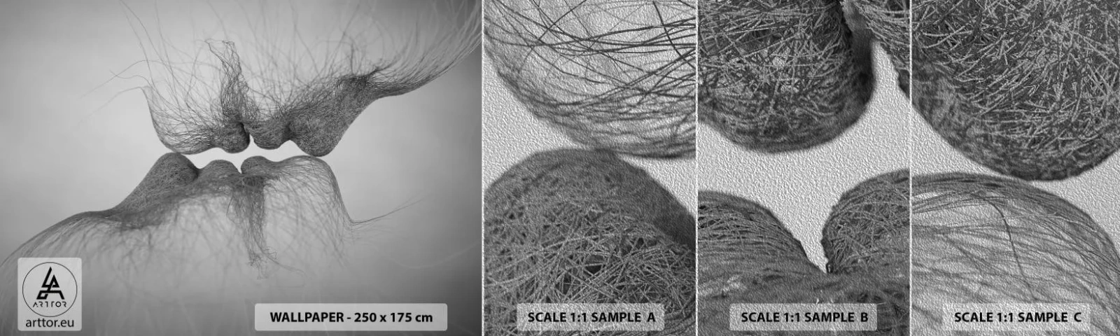 Mostră tapet Premium Sand - Sărutul vântului - Abstracția, Grafică, Dragoste - 100x30 cm