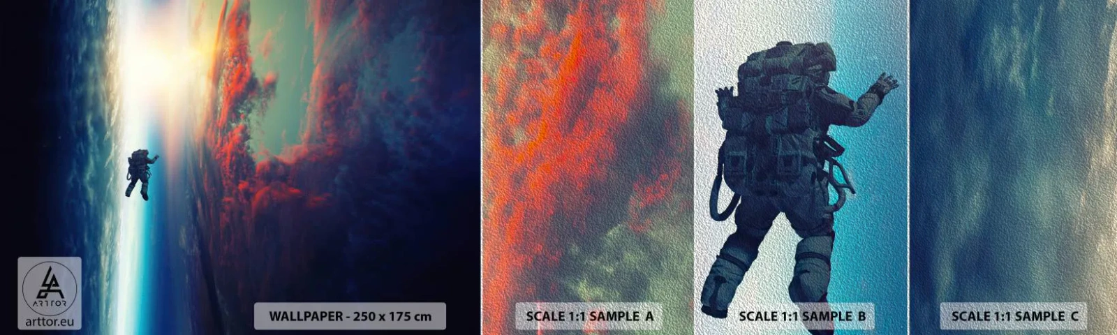 Mostră tapet Premium Sand - Provocând universul - Abstracția, Astronaut, Cosmos - 100x30 cm