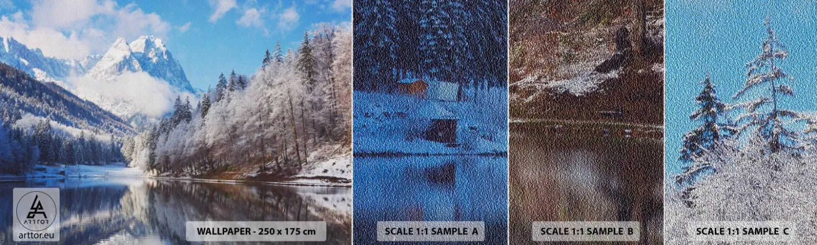 Mostră tapet Premium Sand - Veghe de zăpadă - Iarnă, Peisaj, Munţi - 100x30 cm