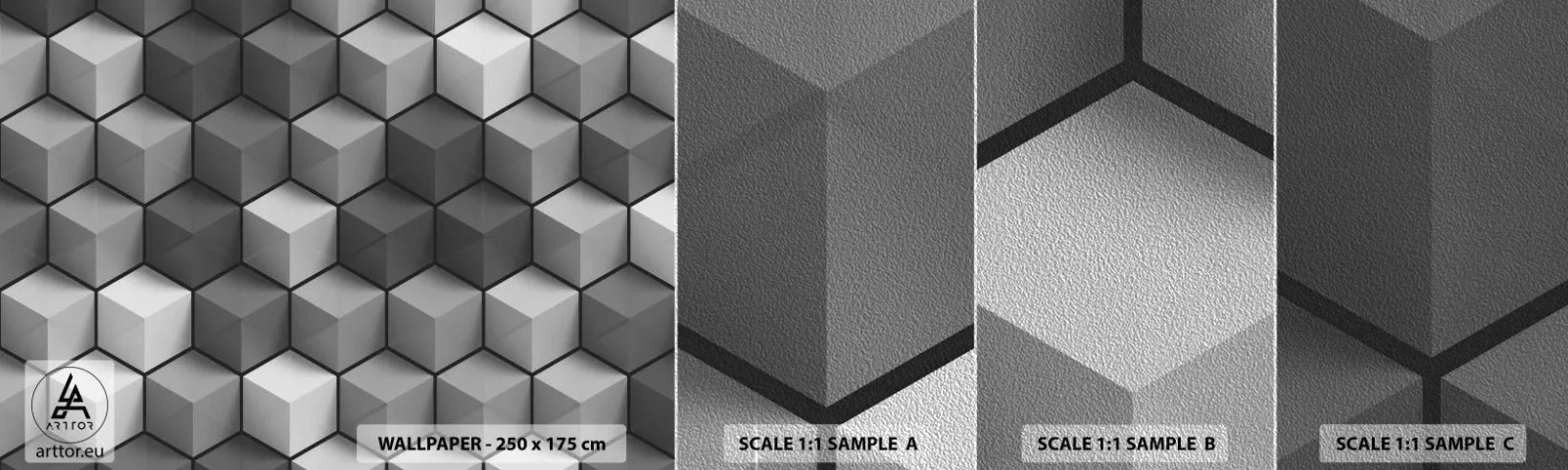 Mostră tapet Premium Sand - Puzzle cubist - 3D, cub, Modern - 100x30 cm