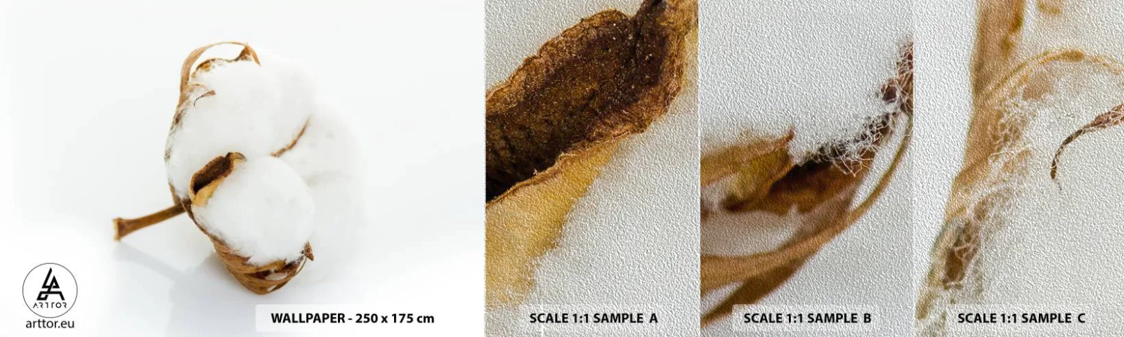 Mostră tapet Premium Sand - Moale prin natură - Bumbac, Minimalist, Floare - 100x30 cm