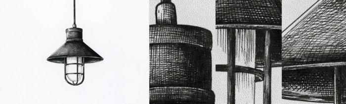 Mostră tapet Premium Sand - Cu mulți ani în urmă... - Lampă, Desen, Creion - 100x30 cm