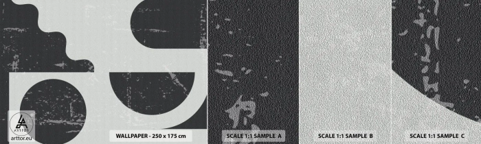 Mostră tapet Premium Sand - Compoziție deasupra și dedesubt - Abstracția, alb-negru, În vârstă - 100x30 cm